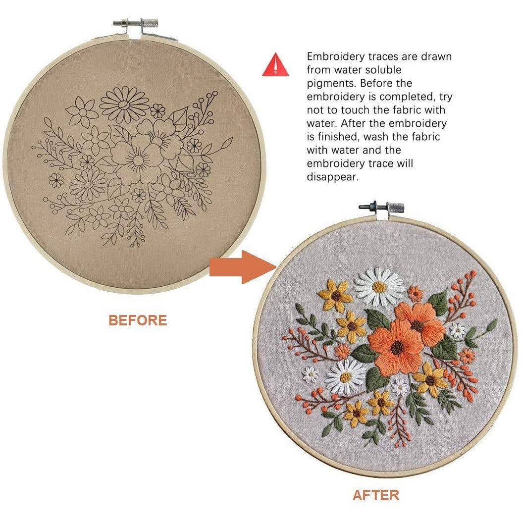 - EASY TO USE – The embroidery cloth has a colored pattern on it and the embroidery hoop has a brass adjustment screw so that you can tighten when necessary to keep the fabric as tight as a drum. With the instructions included, it is easy for the beginners to learn the needlework.