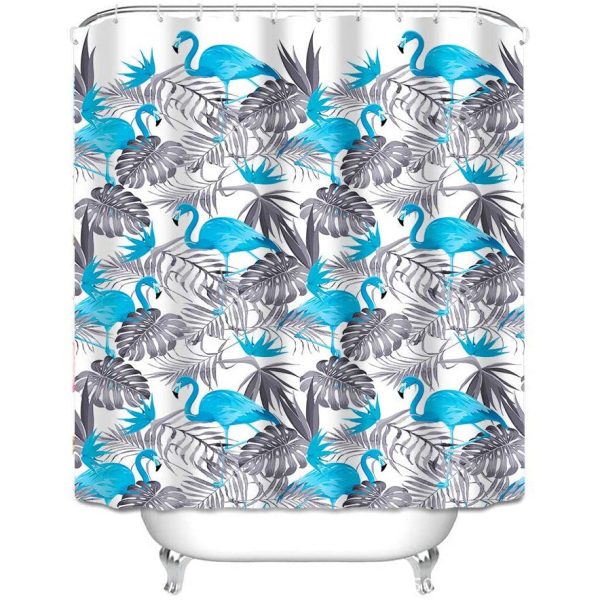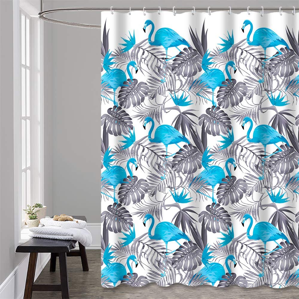 Fabric Shower Curtain Set with Hooks Blue Flamingo