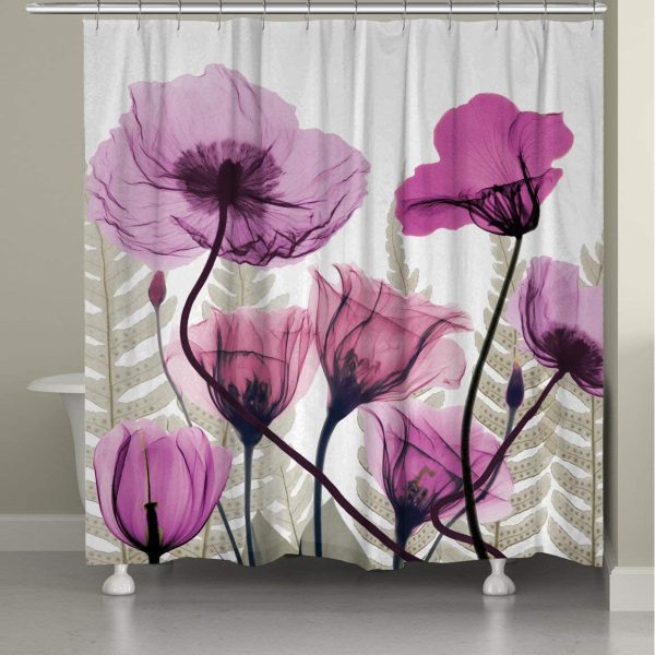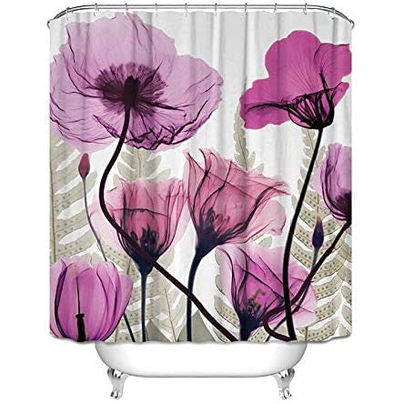 Fabric Shower Curtain Set with Hooks Pink Lotus