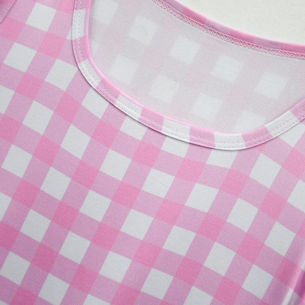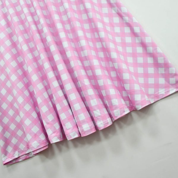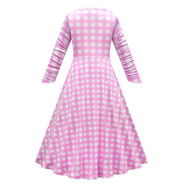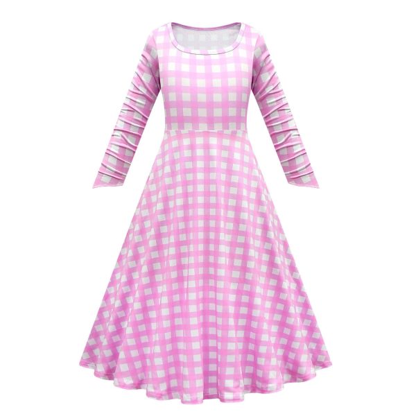 - This pink plaid costume with long sleeve and classic round neck design. It is highly restored the character in movie. Complete your fashion’s look with this plaid dress, hat and jewelries now.