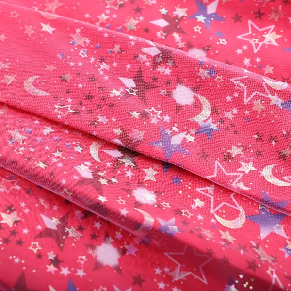 - The pink fashion dress features a fake two-piece design, the bottom is completely covered in star and moon prints which full of design sense. The dress comes with a matching pink neck scarf, easy to makes your little be the brightest star in the crowd.