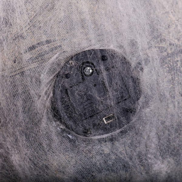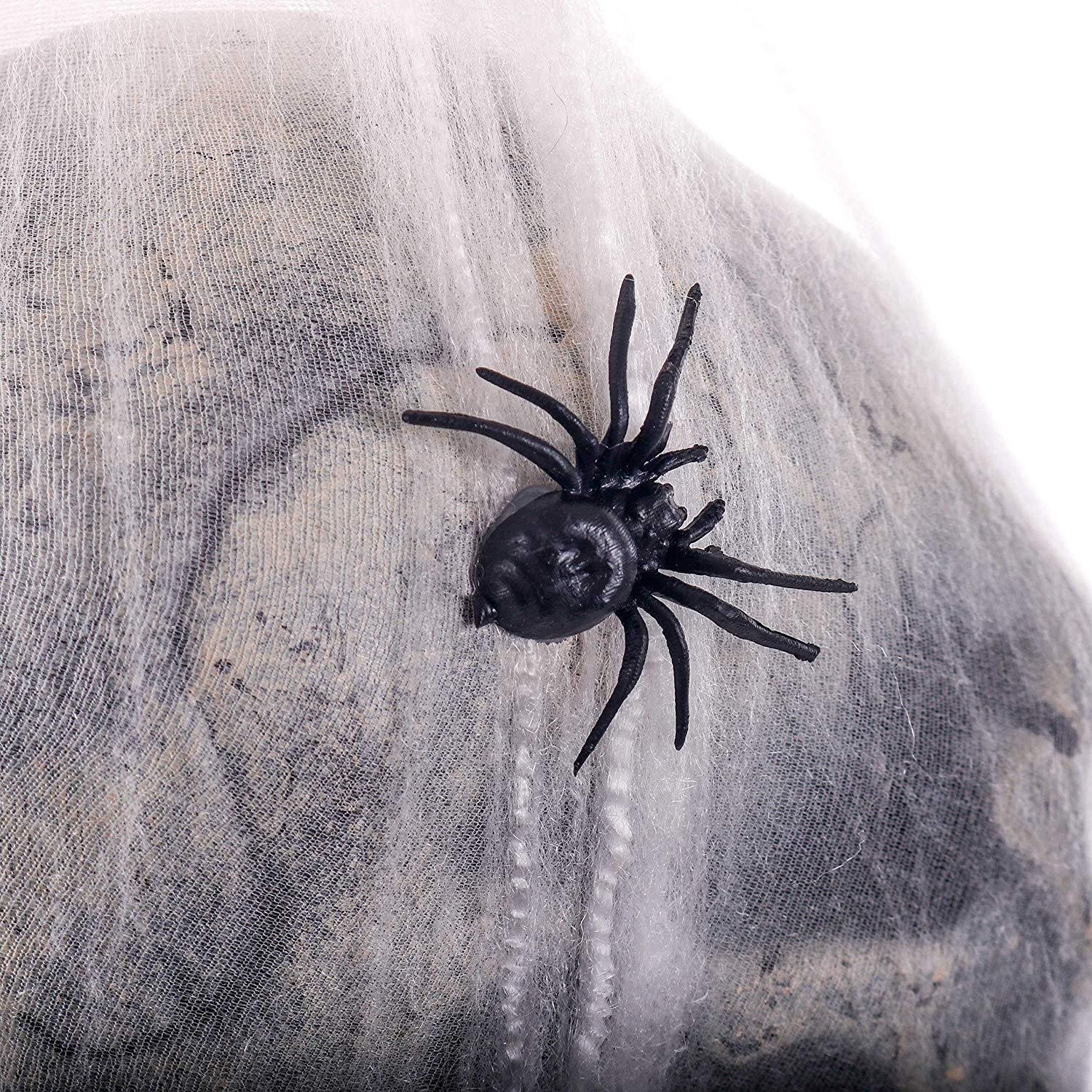 The skull is as large as a human head, only realistic. It is surrounded by cobwebs, and there are some spiders in the web, when it hangs, it is really scary for Halloween.