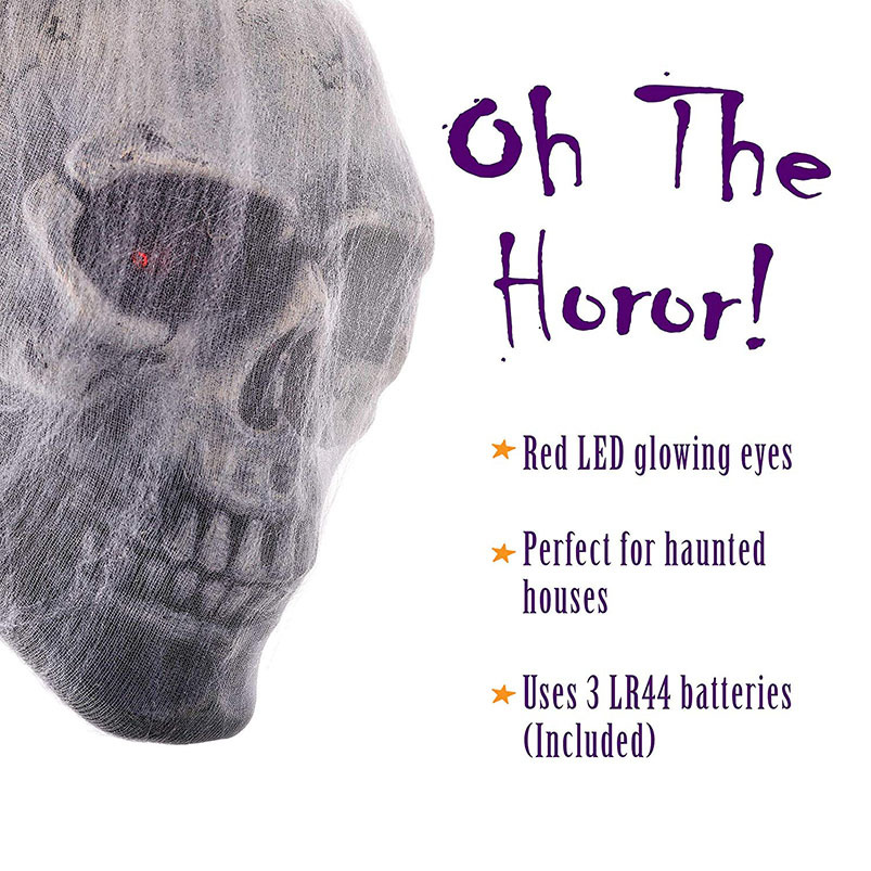 It can be used in various scenarios, home, hauntedhouse. It comes with creepy skull appearance design, which isand scary. Furthermore, a necessary decorative accessory for Halloween themedscene.