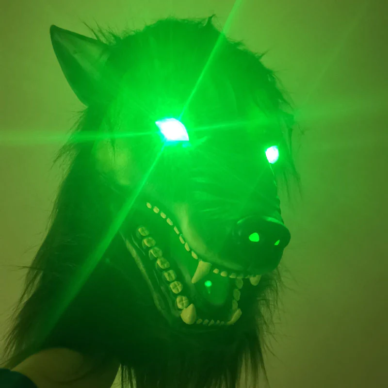 HALLOWEEN MASK EYES GLOWING WOLF HEAD LATEX MASK ANIMAL ANONYMOUS MASK COSPLAY PLUSH HEADWEAR PROPS HALLOWEEN PARTY SUPPLIES
