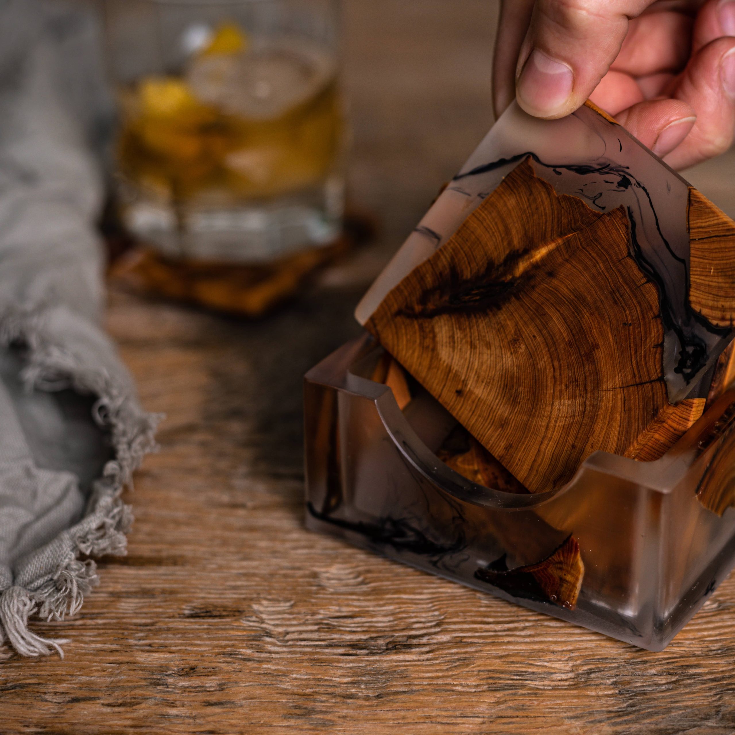Handcrafted with Natural Cedar Wood, Epoxy Resin, and Ink to create a beautiful natural tone. Every Coaster is unique and sparks a gorgeous classy look. No more annoying water rings and moisture damage to your furniture! Host your guests in style with these functional and rustic coasters, ideal for protecting tables, countertops, and desks from drink condensation.