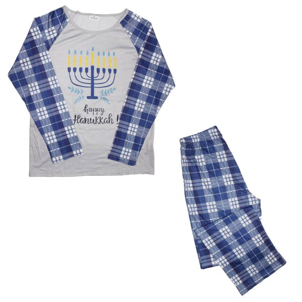 Happy Hanukkah Blue Plaid Family Chanukah Pajamas