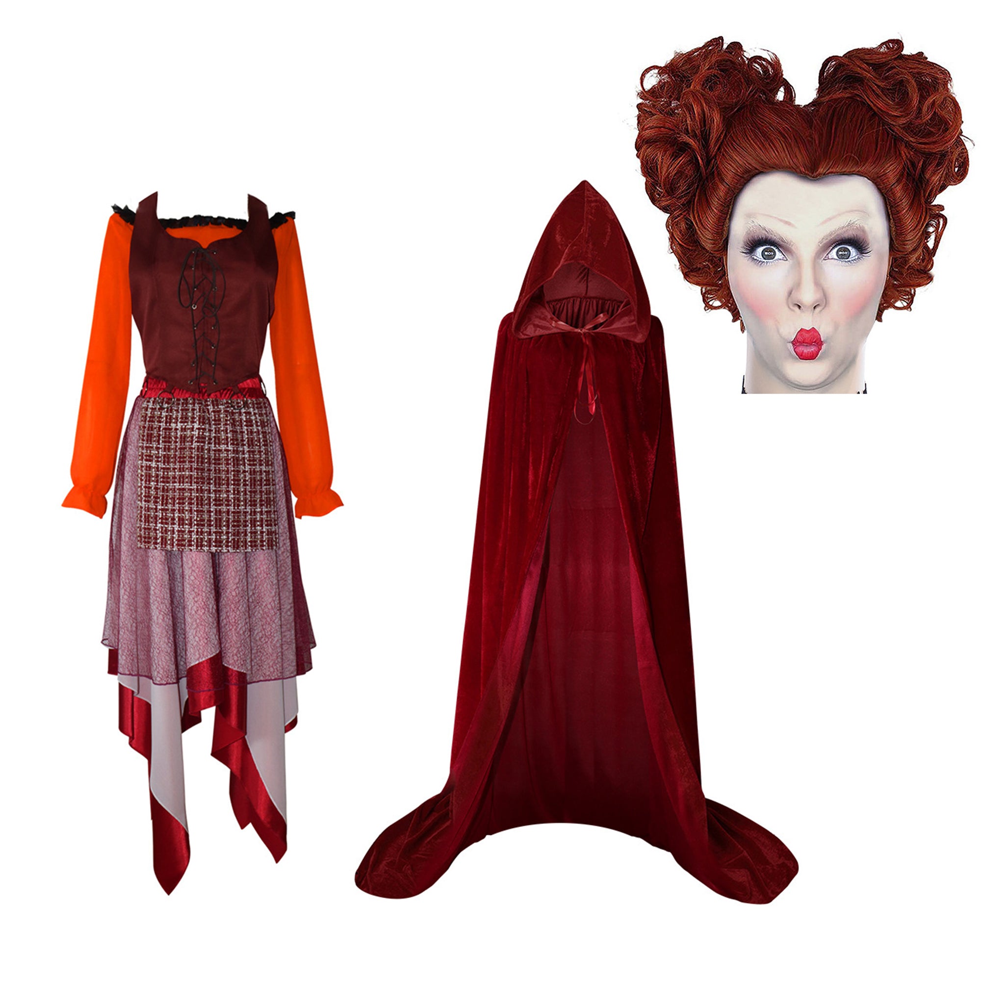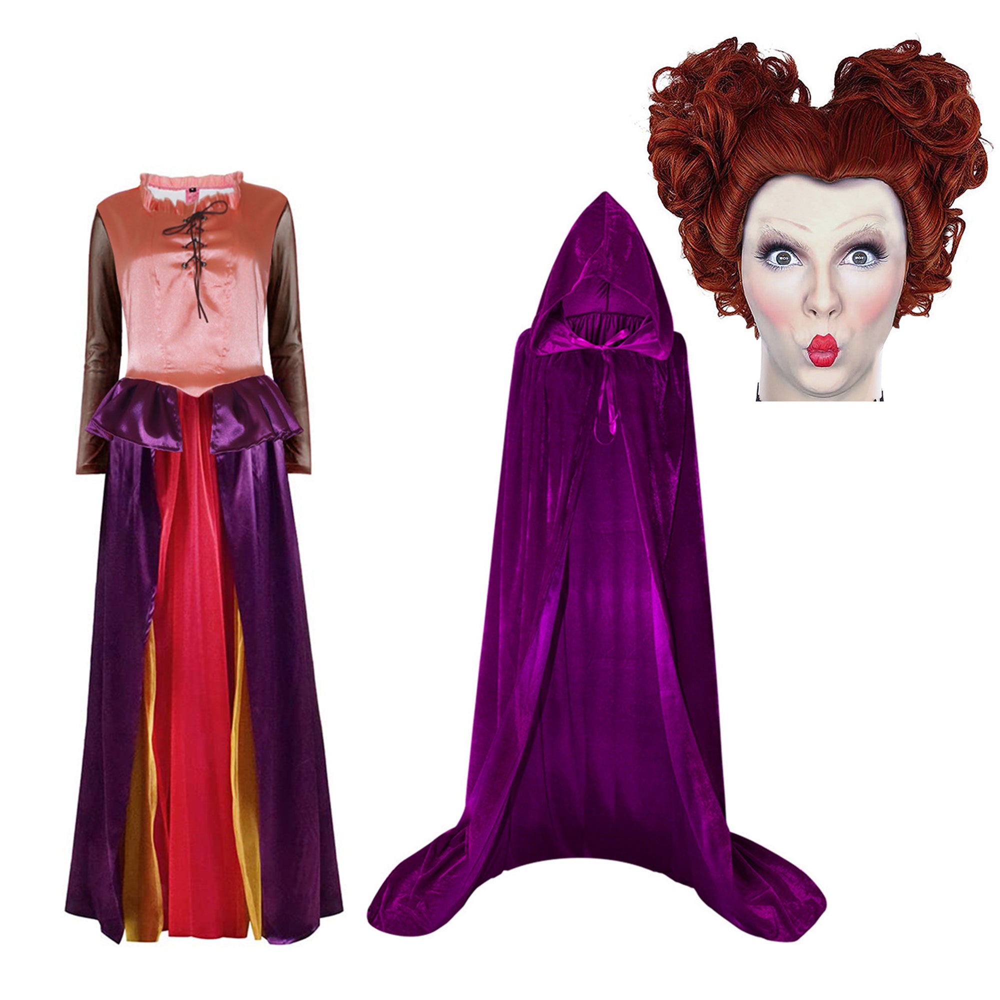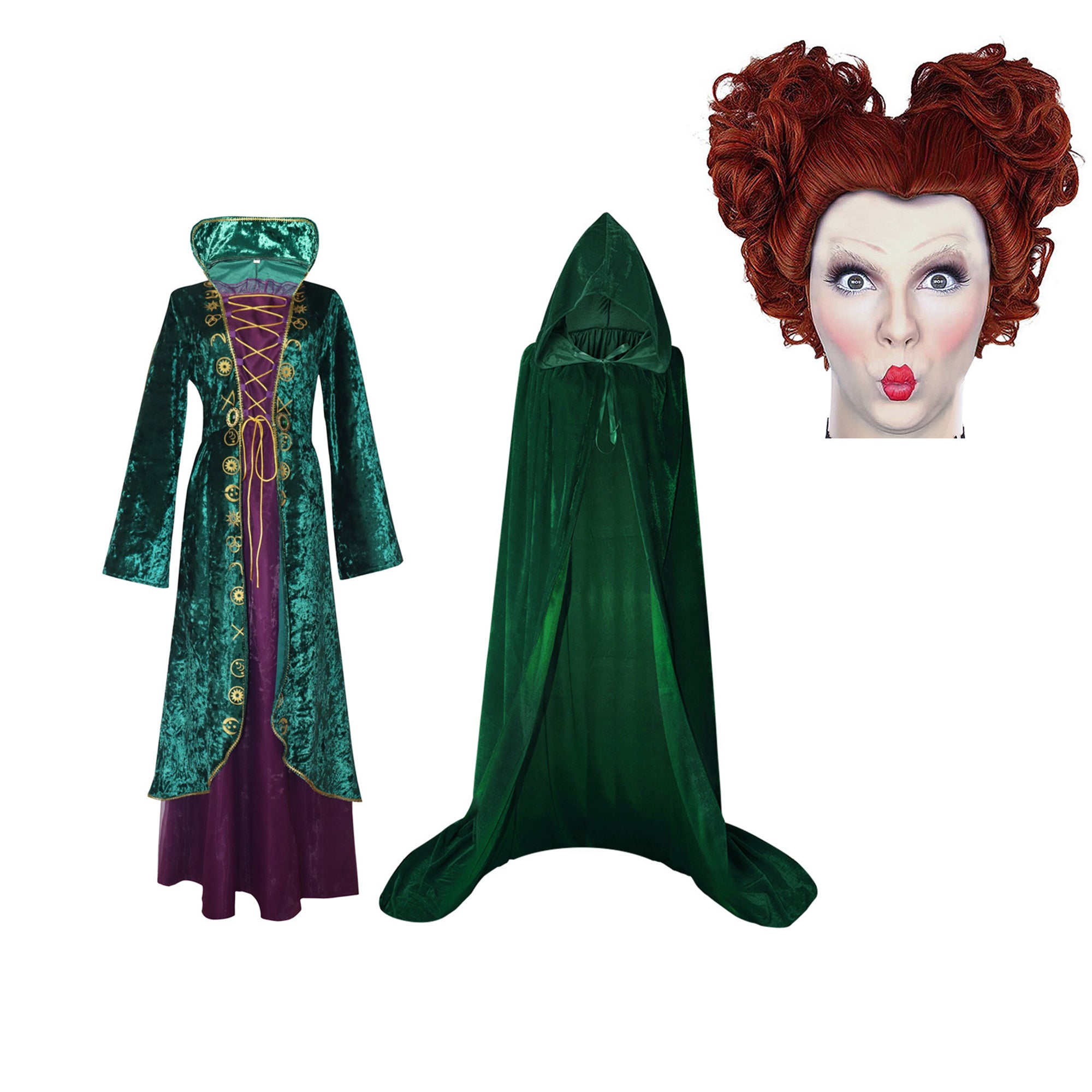 This meticulously crafted costume is inspired by the iconic characters Winifred, Mary, and Sarah from the beloved movie sequel. Immerse yourself in the magic of Halloween as you embody the mischievous and enchanting spirits of these witches.