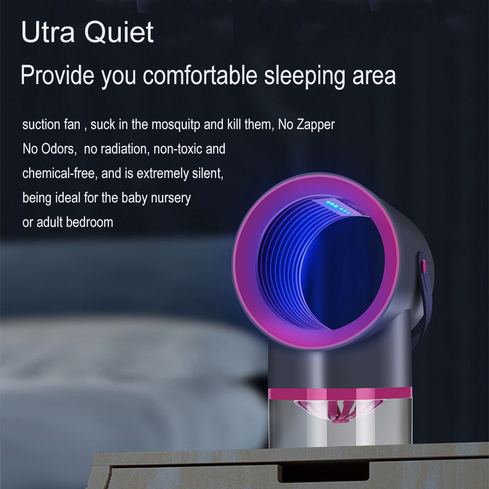 • UV LIGHT MOSQUITO TRAP – The  USB plug-in UV light mosquito killer emit 365nm wavelength which has a fatal attraction of insect’s fly bug pest mosquito.  This wavelength has a fatal attraction of insect’s mosquito. Mosquitos are attracted to the light source, and then they will be trapped into the mosquito tray under strong cyclone. Powerful cyclone will make the mosquito dehydrated and died.