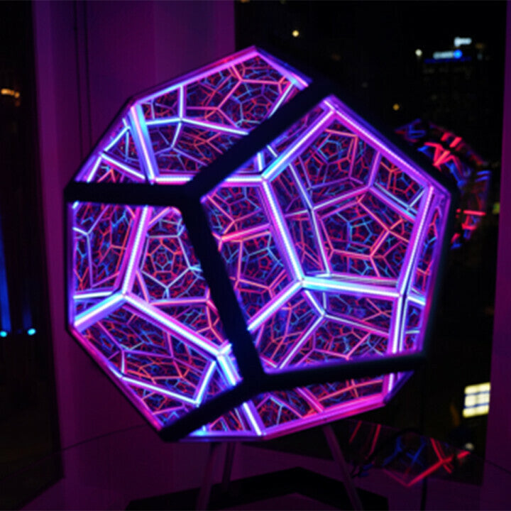 ✨Infinite Dodecahedron uses the unique properties of light to give the viewer the feeling of staring into an endless abyss of geometry and color.