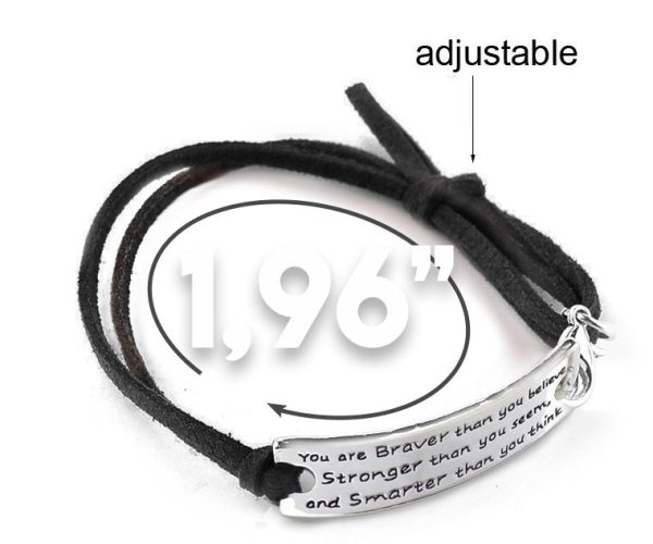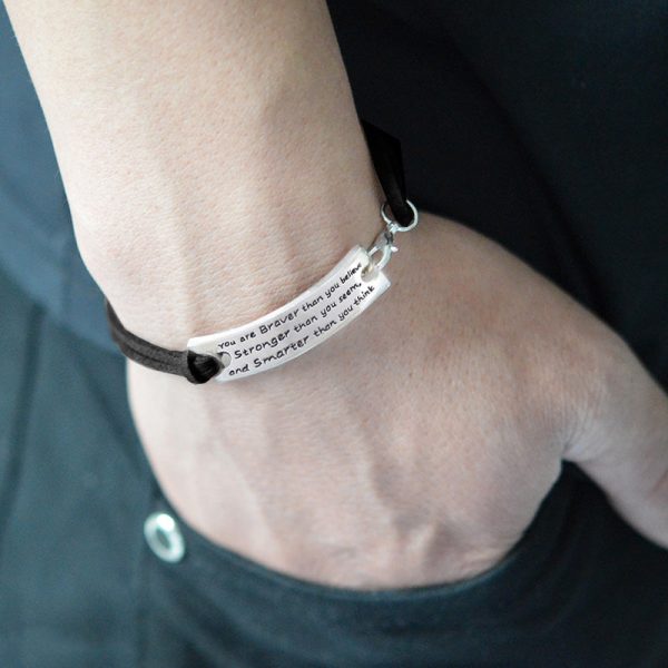 Inspirational Leather Bracelet – “You are Braver Than You Believe, Stronger Than You Seem and Smarter Than You Think”