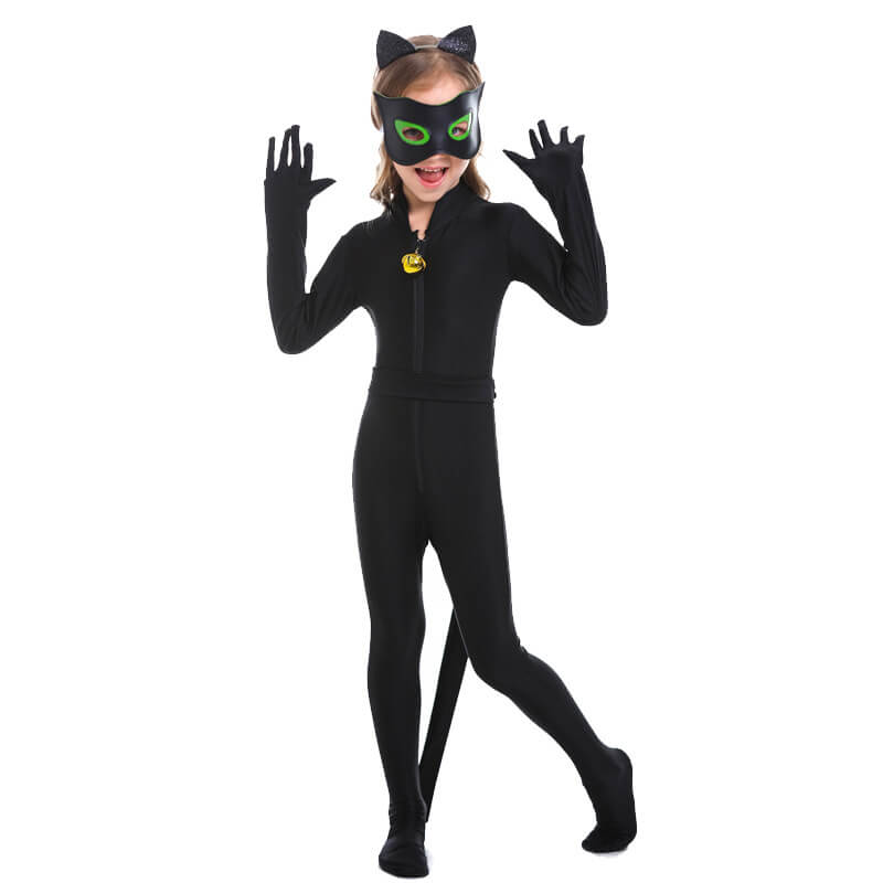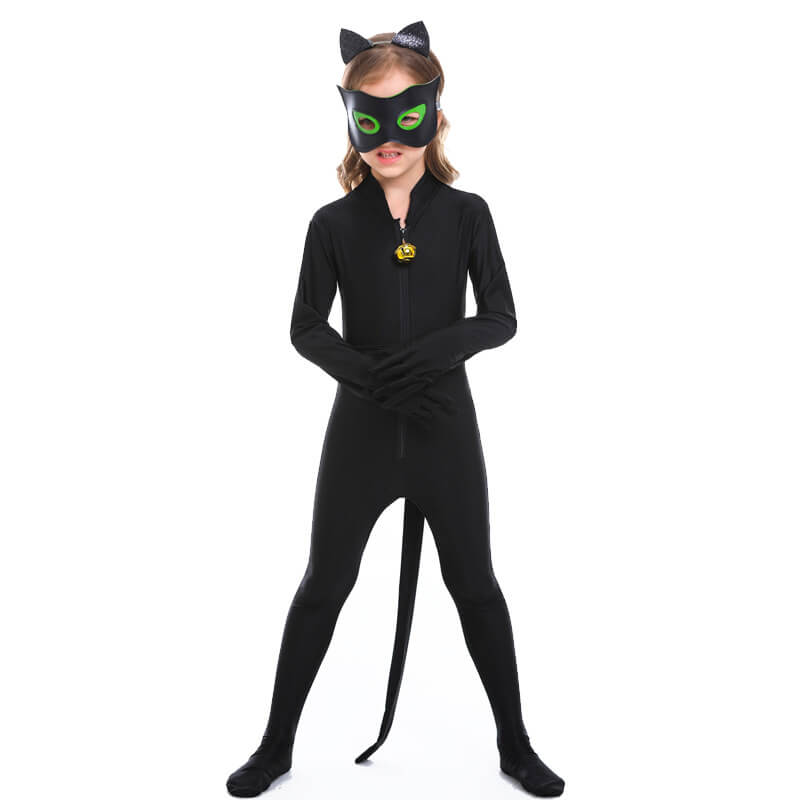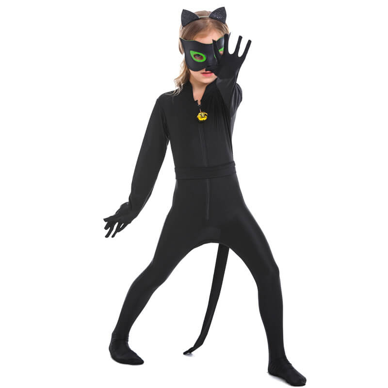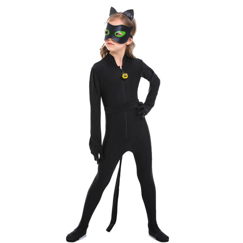 - Identical to Cat Noir Costume — Literally gives you everything you need, you will get what you see, one Cat Noir Jumpsuit, one eye mask, one black adjustable waistband (tail), and one black cat headwear.