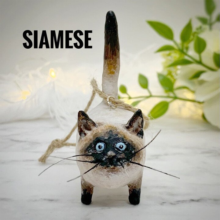 Options: STYLE : choose between 6 different types: orange tabby, grey, tuxedo (black and white), tortie (tortoise shell), black or Siamese. We have more than one of each type… so yours may not be exactly as shown. It will, however, be very similar and just as cute