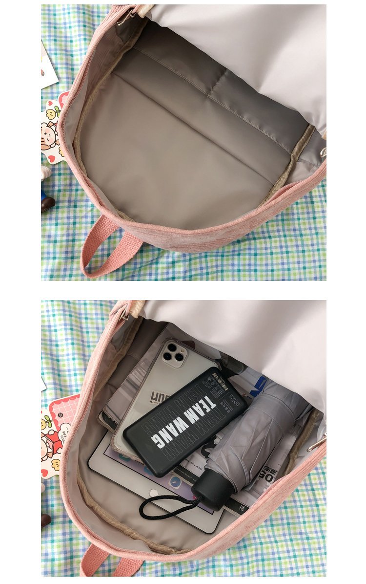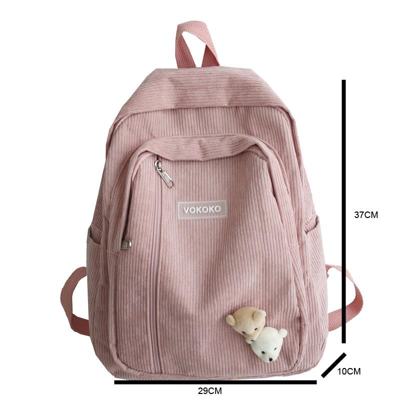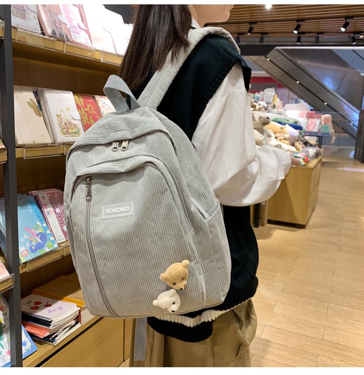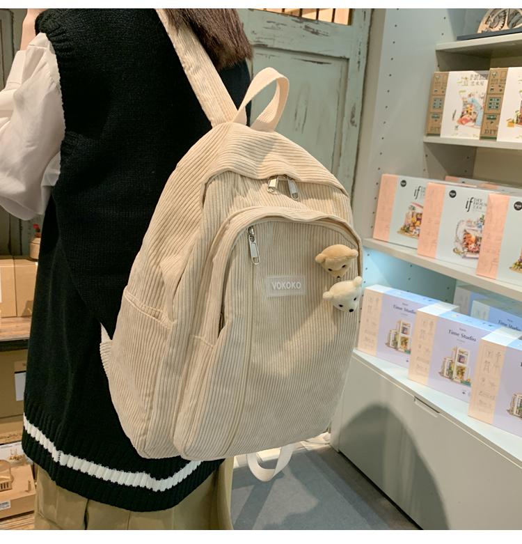 A fashionable striped corduroy backpack. This bag is strong and lightweight, suitable for all year-round travel and everyday use, this practical yet fashionable bag is ideal for all of your travel plans.