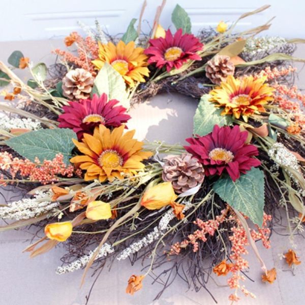 Timeless:this Wreath is Made of Artificial Flowers That Covers the Front , Accented with Vine That Cover the Base of the Floral Wreath Make for a Timeless Seasonal Home Décor.