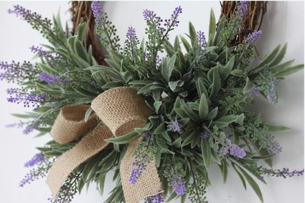 Artificial lavender and burlap bows are firmly fixed on the base of the grape garland. Realistic artificial flowers keep fresh and beautiful year after year, adding a touch of color and romance to your house. In summer and autumn, it is an elegant and lovely decoration.