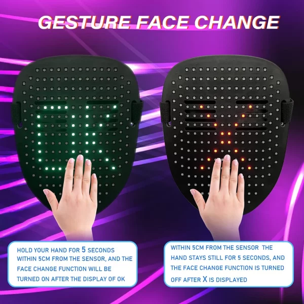 Led Mask with Gesture Sensing LED Lighted Face Transforming Mask