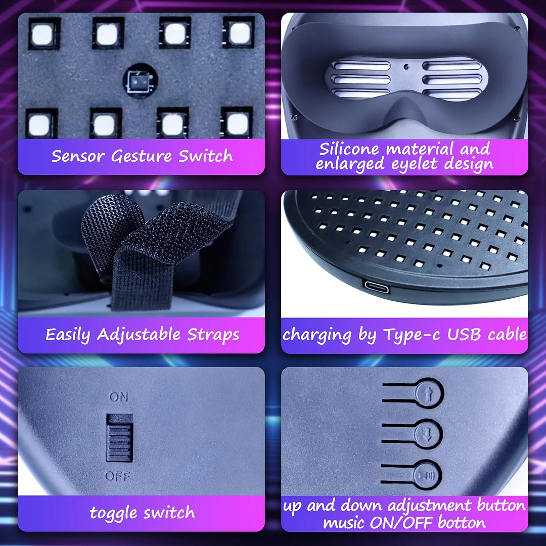 • Made of tough plastic and Soft sponge, You can wear this led mask for a long time. Its ergonomic design, soft interior, and pre-cut eyeholes ensure a comfy fit all day.