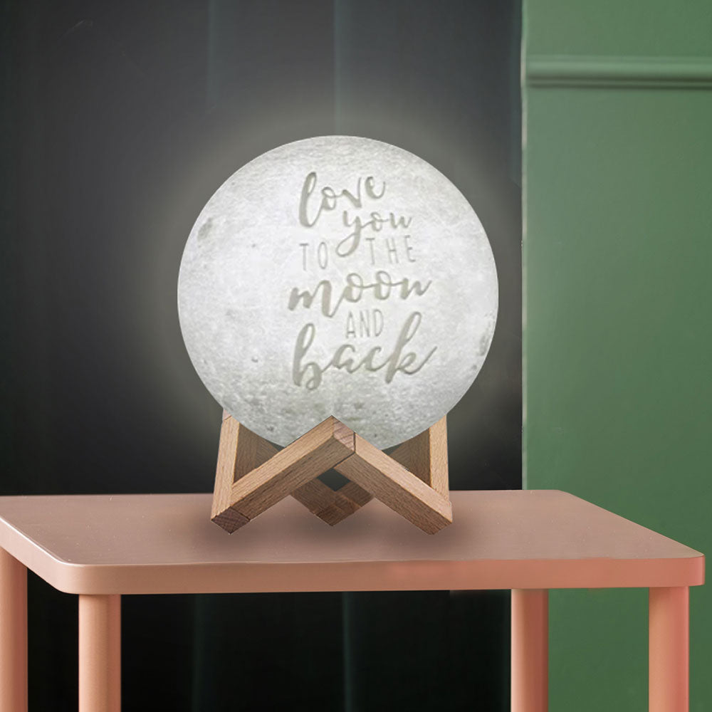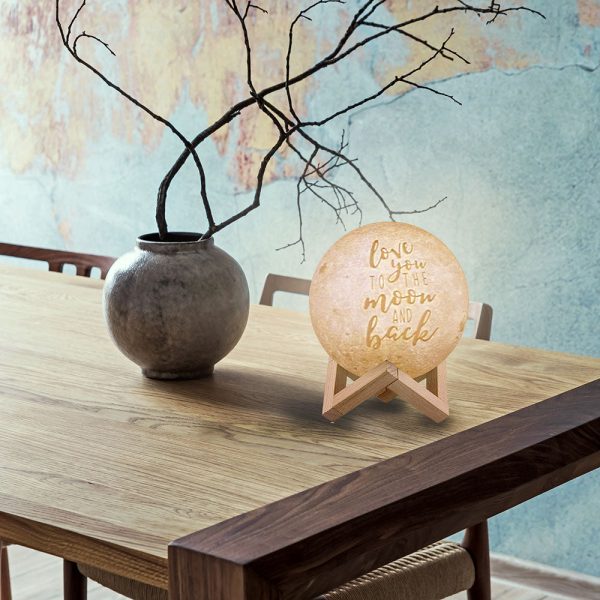This lamp is already pre-customized with “Love you to the moon and back”.