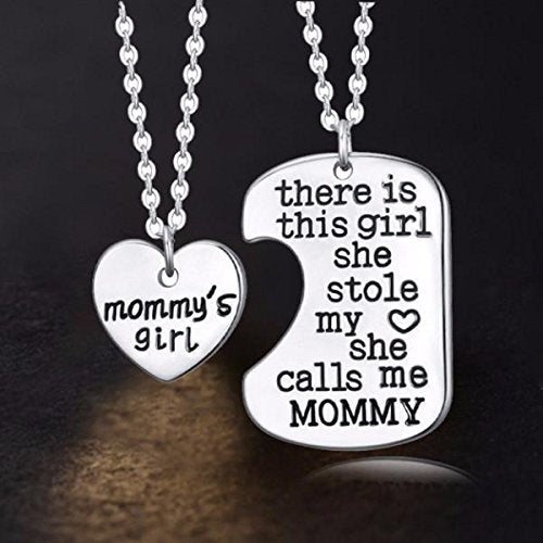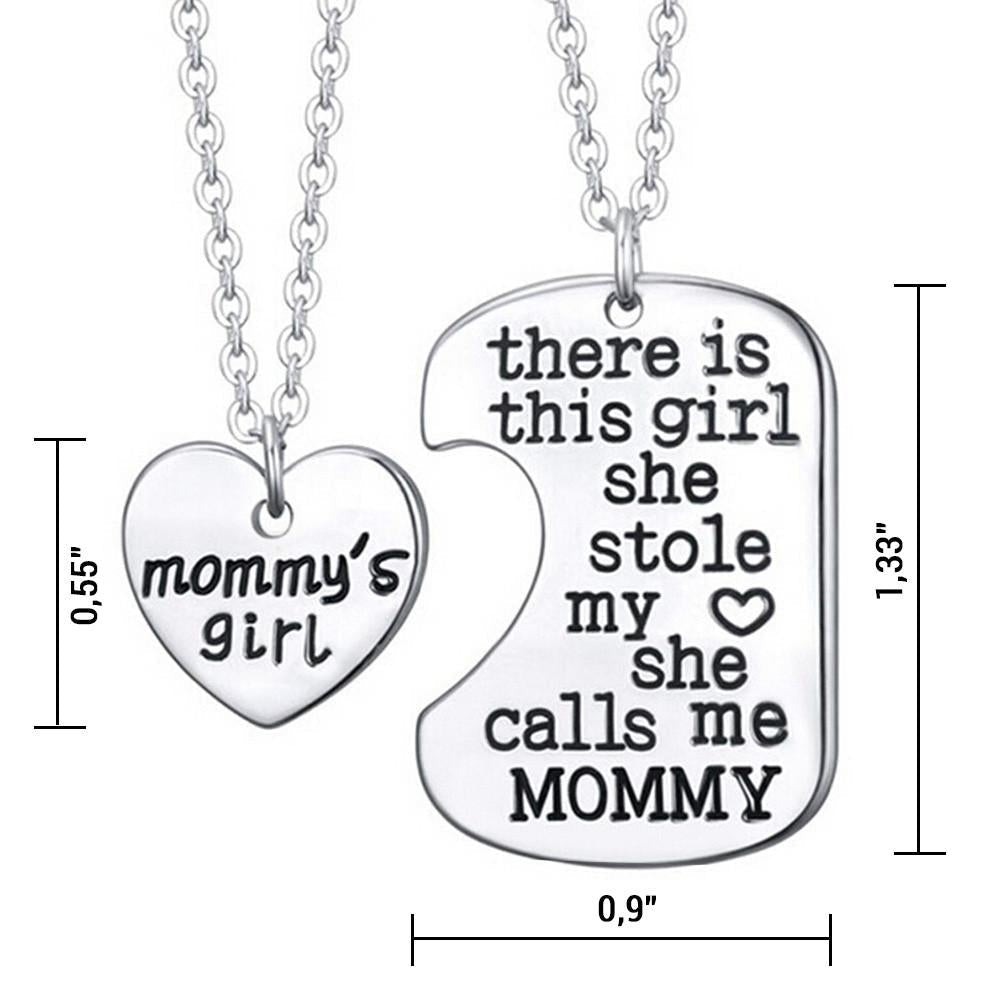 - FALL IN LOVE WITH BEAUTIFUL DESIGN AND PACKAGING – Each necklace comes with a 20″ long chain. The first heart necklace shows off the words: “mommy’s girl” engraved and the second one “There is this girl she stole my heart she calls me MOMMY”. It comes with a PREMIUM Black Velvet Pouch Which Makes it a Great Gift for birthdays, Christmas and holidays, or just to say “I love you!”