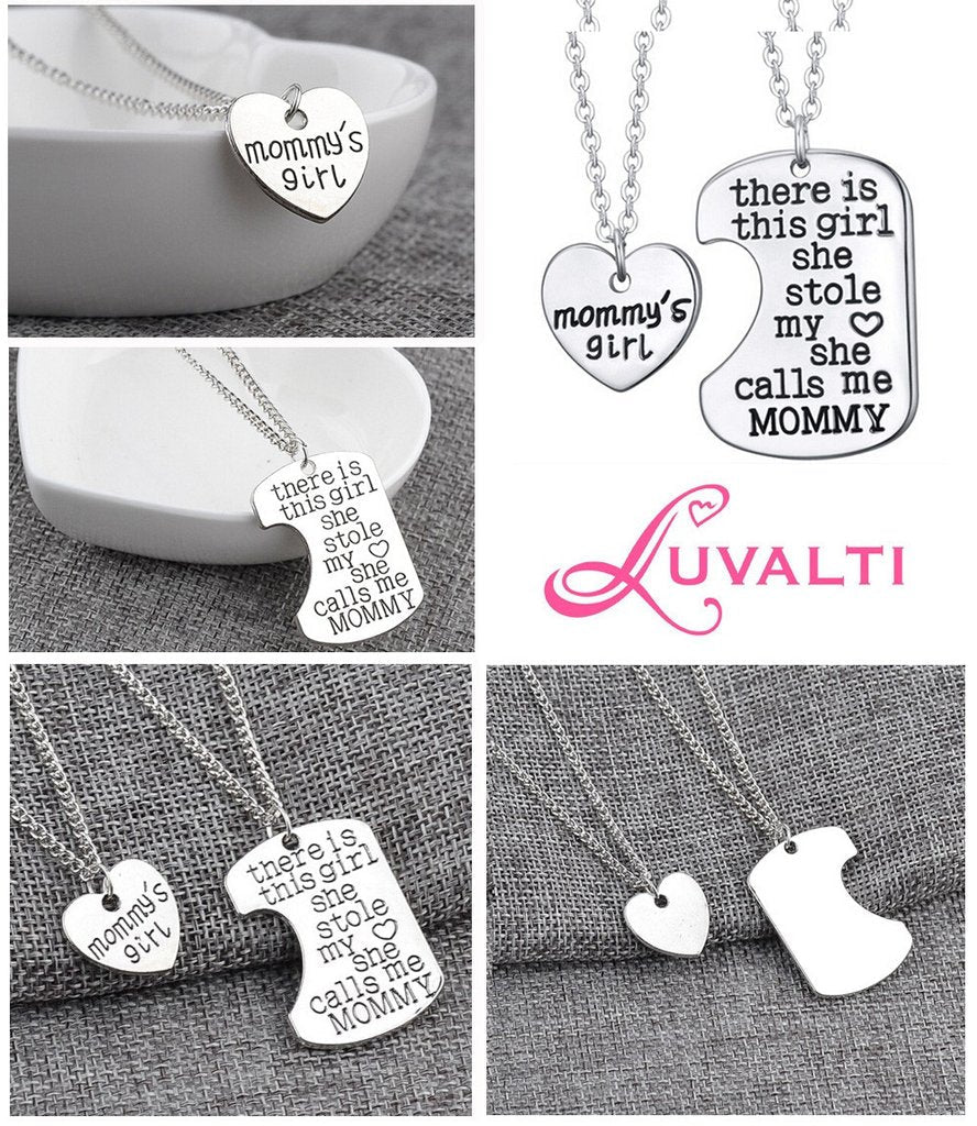 Mommy’s Girl Heart Pendant Necklace – Mother Daughter Necklace Set