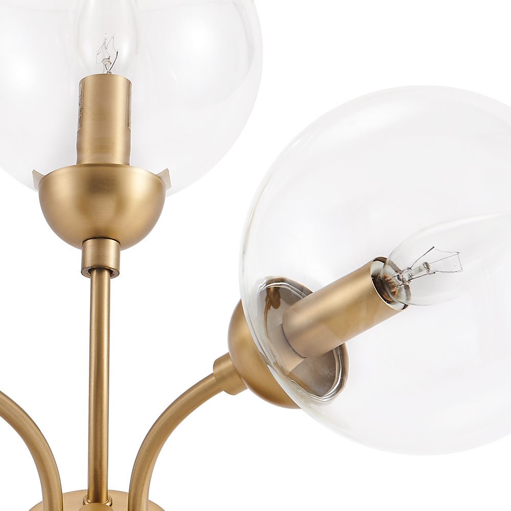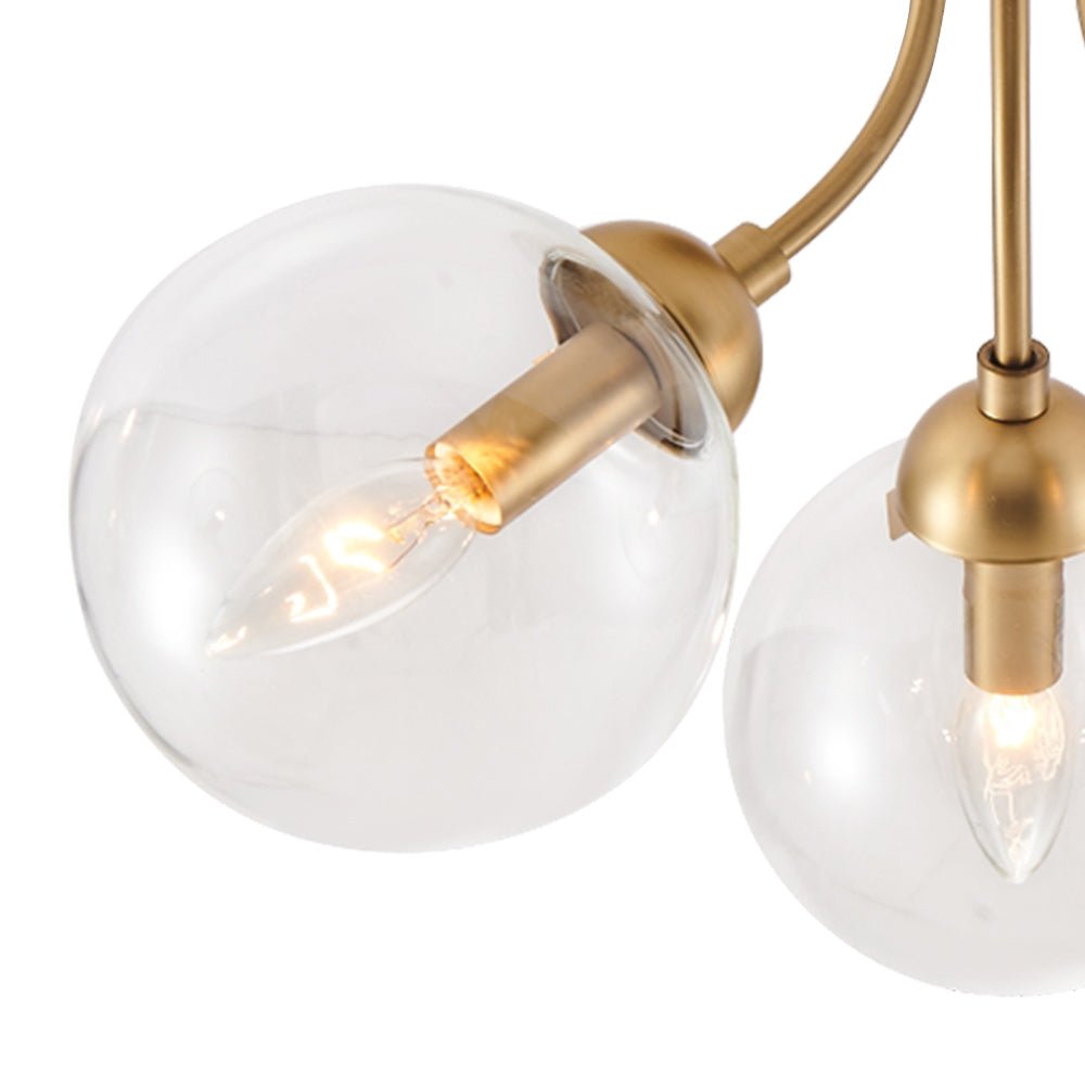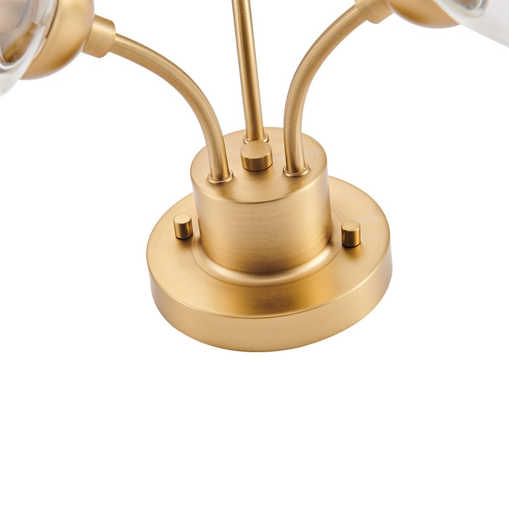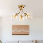The Gold Sputnik Semi Flush Mount with Glass Globes adds a distinctive, eye-catching touch to any room. Featuring five glass globes mounted on gold metal sputnik arms radiating from the central mounting point, this fixture creates a unique and sophisticated look that won’t go unnoticed.