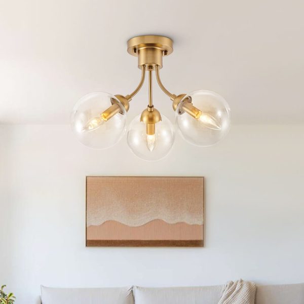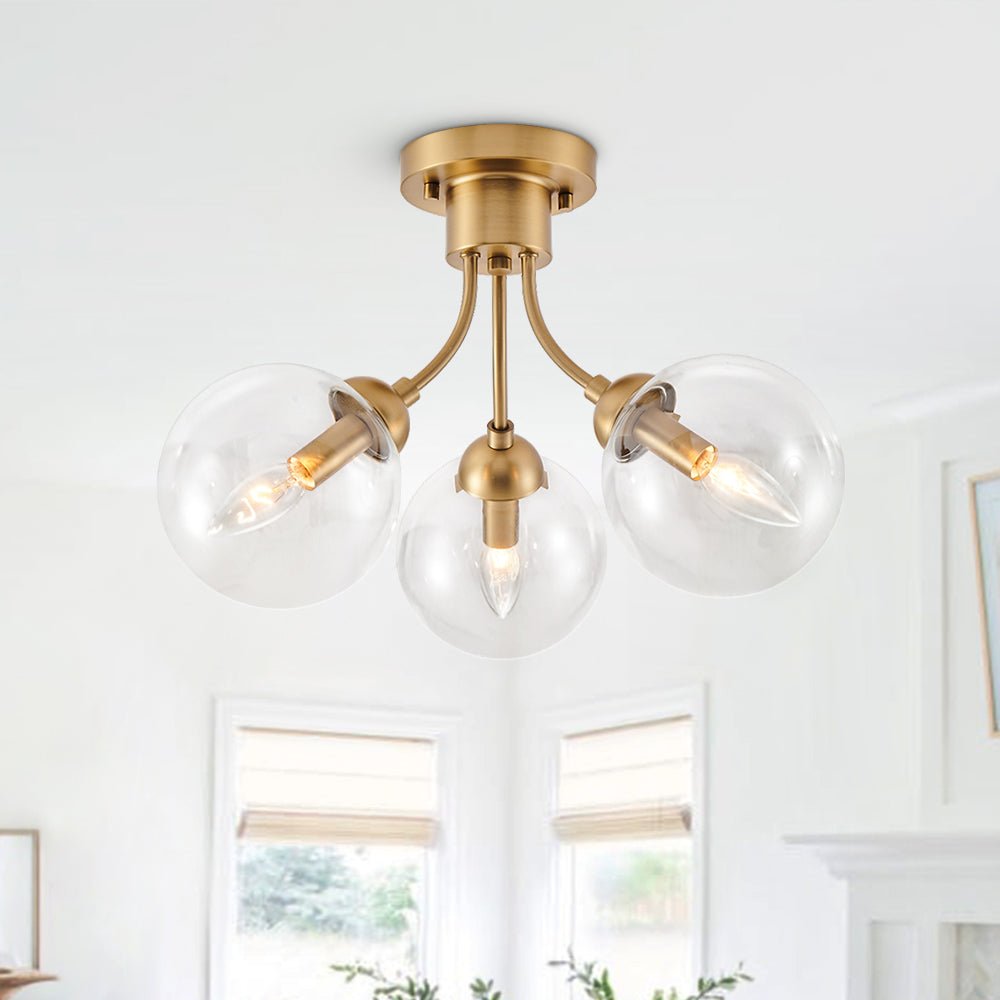 This Gold Sputnik Semi Flush Mount with Glass Globes is the perfect addition to any modern home. With its gold metal frame and glass globes, this light will bring a modern, sophisticated touch to your living space.
