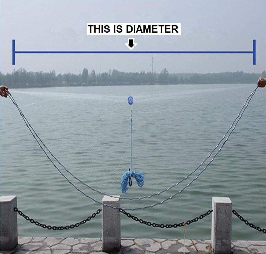 • Size:Circular fishing net 3.6 meters diameter, Rope length 10 meters.