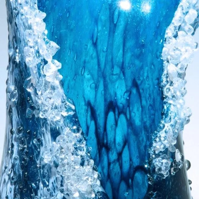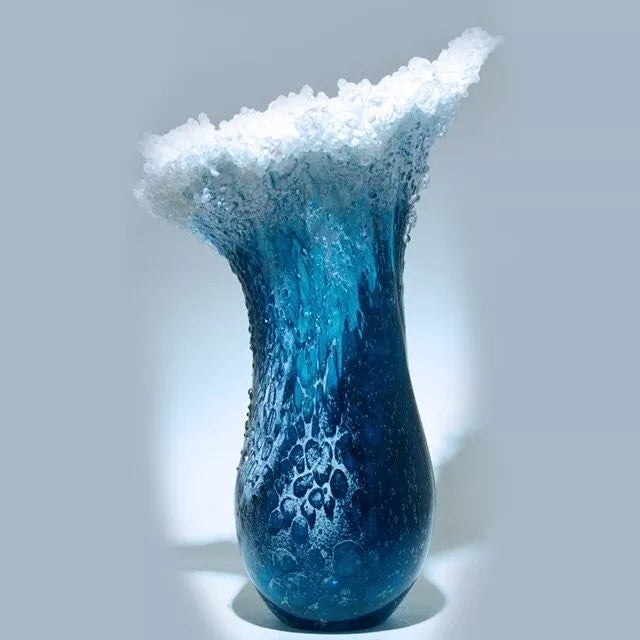 This wave vase was designed and created by Hawaiian glass artists, and their unique vases are inspired by the power of the ocean. The craftsmanship of the ocean vase is very meticulous, as if someone has frozen time, caught the wave in the middle of the picture, and made a vase.