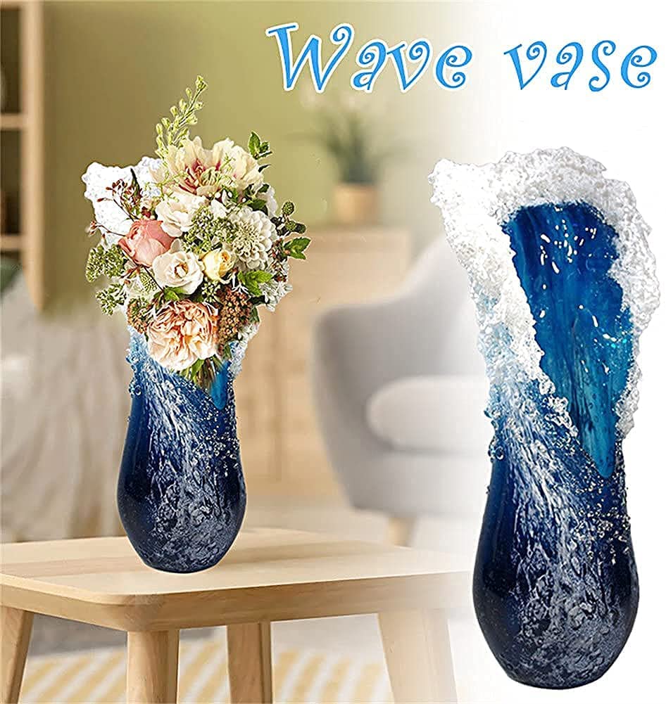 New Majestic wavy vase Beautiful Ocean Wave Fused Glass Resin Vase