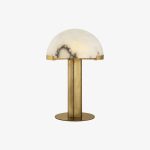 This collection features alabaster stone coupled with luxe metals. The organic carved alabaster pieces, set in a prong setting of rich natural bronze, posses a poetic, paired-down luxury of easy refinement. Available in Burnished Brass, and Bronze with Alabaster.