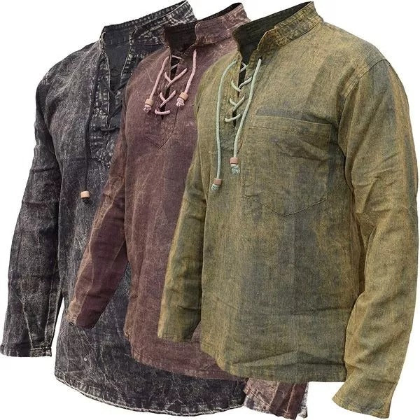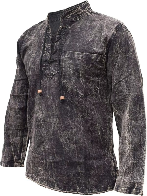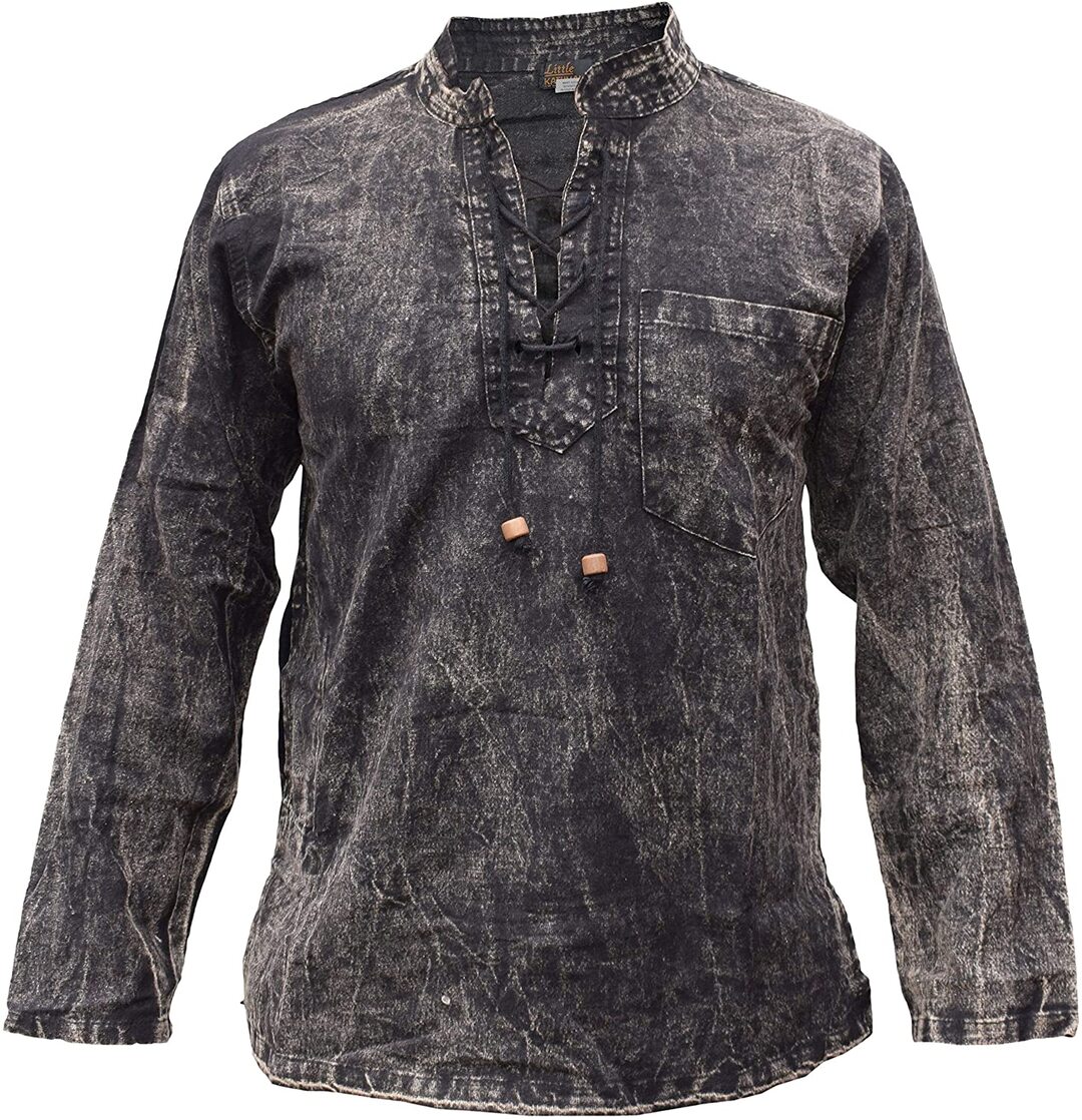 - Handmade hemp cotton long sleeve shirt with grandad collar. Available in stone washed and non washed versions.