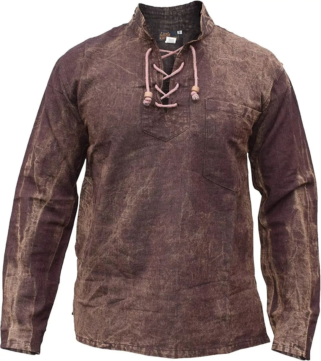 - V-Neck with lace up neck finished with a wooden hoop at the end of the string to give the natural feel.