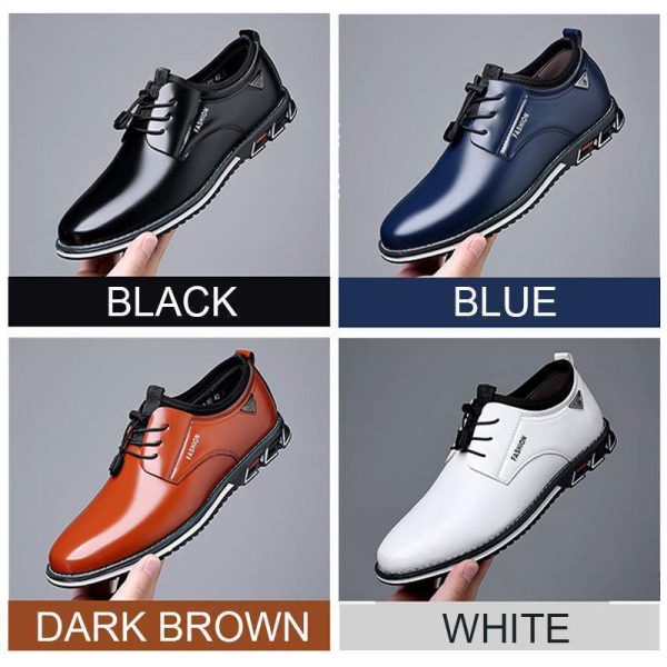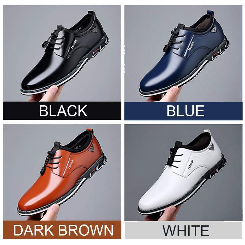 The Men’s Leather Oxford Shoes are perfect for special occasions or everyday wear. With a lightweight, durable and flexible anti-slip sole, these shoes will keep you safe and comfortable on slippery surfaces. They come in black, dark brown, blue or white and are made to fit most foot sizes.