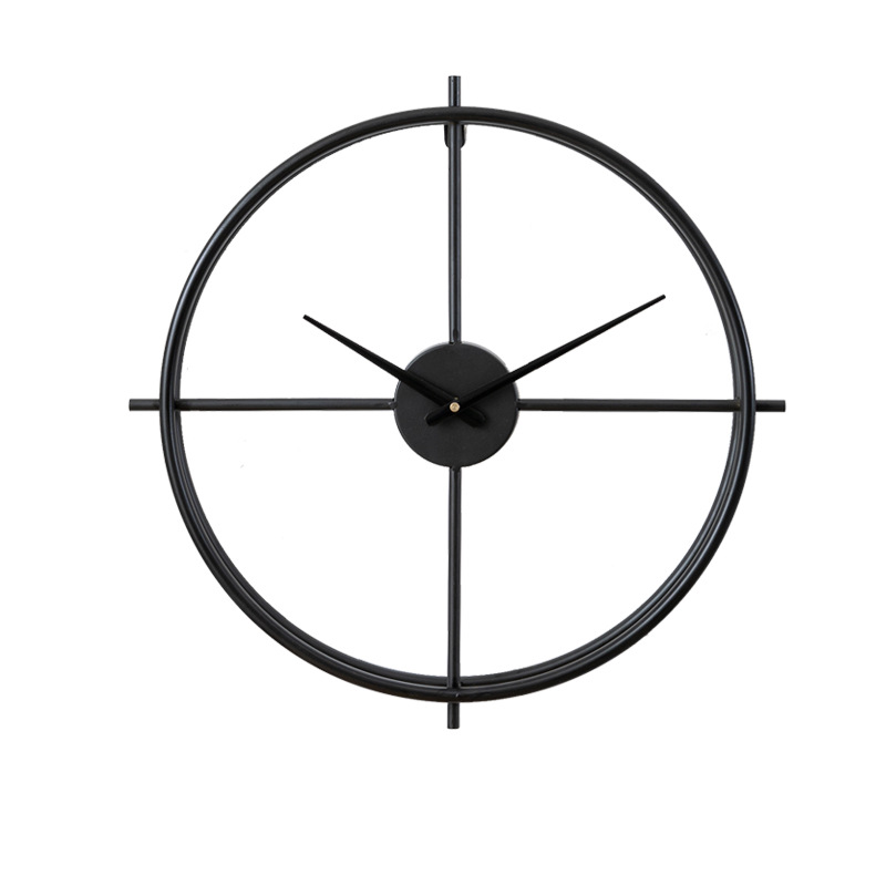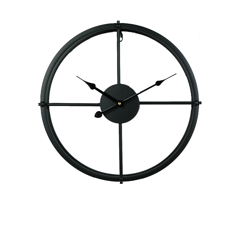Sturdy clock with full metal frame and metal numerals. This clock is the perfect addition to any home that likes to create a quirky, vintage vibe with its decor. It features a black skeletonized metal Arabic dial and black spade hands.