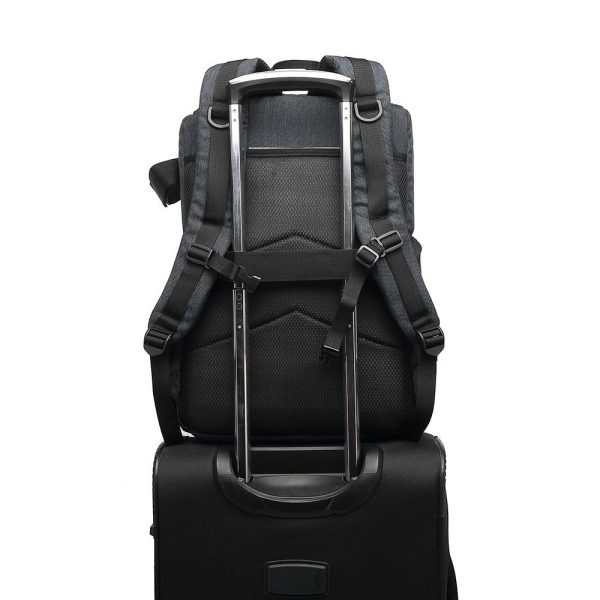 With a fully modular interior, the bag is capable of holding the camera body, batteries, memory cards and other accessories, as well as four lenses, all on the inner compartment. It has a large hidden pouch in the back where you can store your laptop out of sight, as well as an expandable side pocket to hold a small tripod.