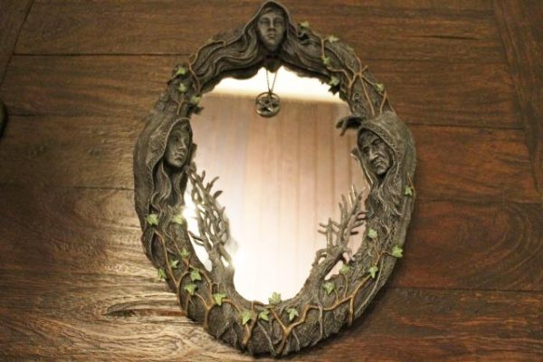 The Triple Goddess is viewed as the Maiden, the Mother, and the Crone, each of which symbolizes both a separate stage in the female life cycle and a phase of the Moon, and often rules one of the realms of heavens, earth, and underworld. Great gift for any celtic mythology, pagan, wicca, fantasy collector.
