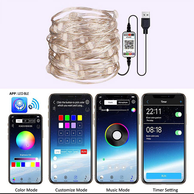 Bluetooth LED Strip is quite handy, as it is powered by a USB cable. To turn it on, simply plug it into a power bank, laptop, or any USB outlet.Bluetooth LED Strip is 5 meters in length, so you can effortlessly decorate your Christmas tree by changing the color and even selecting your preferred lighting mode to complement the environment.