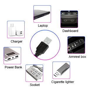 - USB Interface: Car Roof Light Atmosphere may be charged using a power bank, a car interior USB port, a computer, or any other USB device.