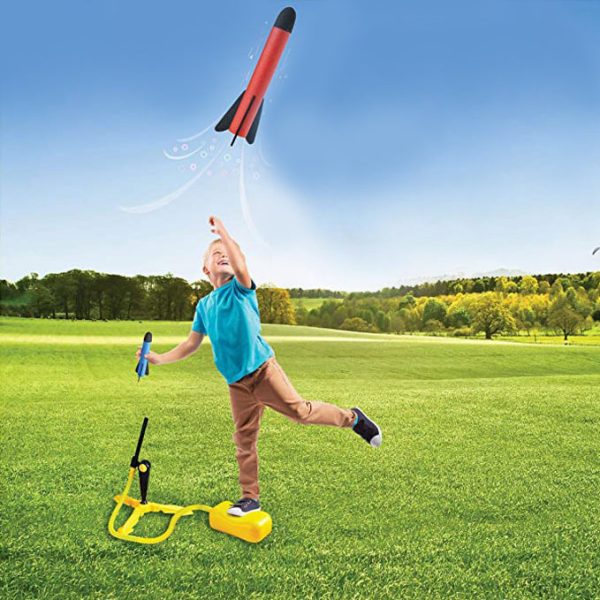 Run, hop, and stomp on the launcher’s power button, and the foam rockets can effortlessly shoot up to 10 meters in the air, guaranteed to wow your kids.