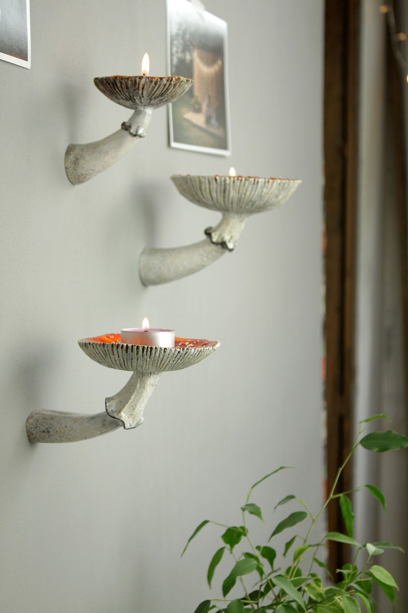 We have come up with a UNIQUE floating shelf in the shape of a amanita mushroom! You can put your jewelry, keys, wallet, watches, coins, headphones, accessories, cream, soap, gloves, hairclips here! Wall hanging shelves can be used as shelves for small indoor plants too.
