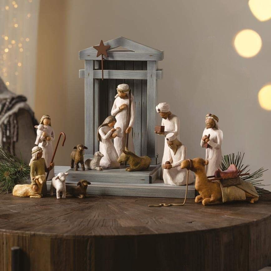 The three wise men, shepherds, and stable animals, and the angels of the great nativity (Song of joy and the dance of life) are part of the traditional nativity. Beautifully represented.