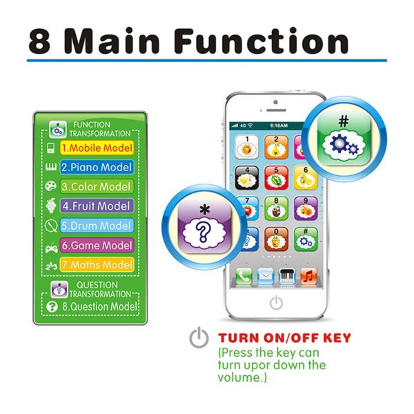 📱The Phone Toy feeds your child’s curiosity to learn through touch, sound and sight Boasts 8 different modes and plenty of sound effects.This toy phone helps improve your child’s hearing, musicality and thinking skills while training their memory and concentration..