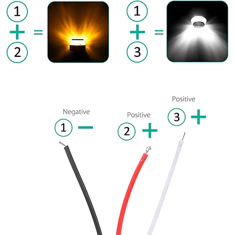 - 3-Wire Design Includes Both Lead Wires for Mounting to All Surfaces. The black wire: negative, Red: Turning (Amber Color), White: Running(White Color)
