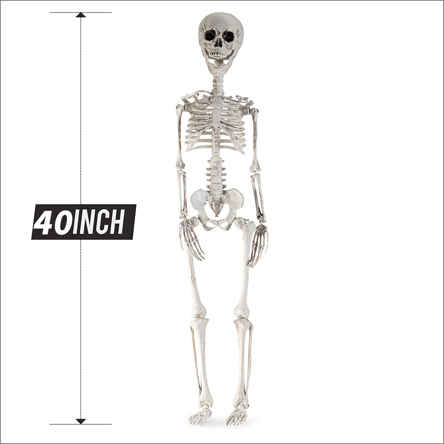 - Includes: 1 Full body Plastic Halloween Skeleton with Movable Joints- 30″ Tall with Hook on Skull for Easy Hanging.