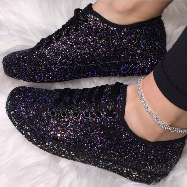 Great for pairing with white/black jeans, leggings and even a cute playsuit. These glitter converse style are a great everyday shoe as a sparkle to your step. We would advise you to order a size up from what you would normally order as these are a small and snug fit.