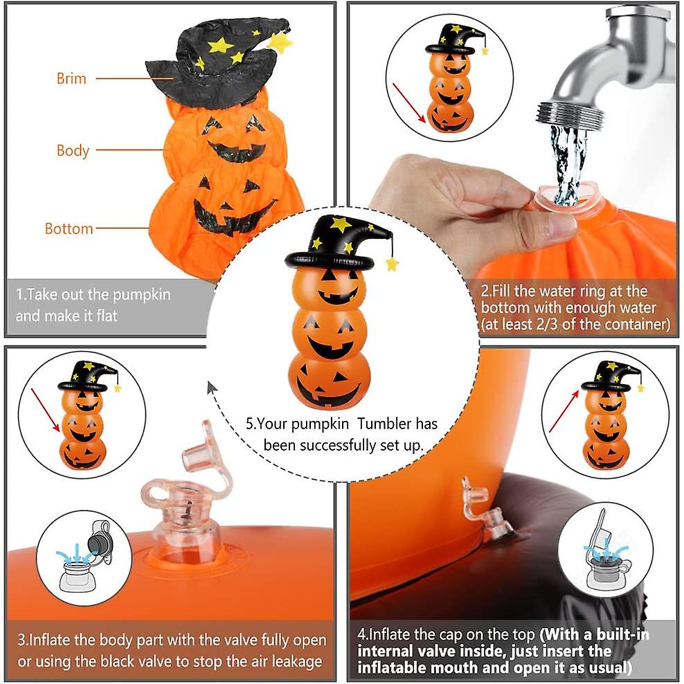 3.Easy Inflation and Deflation–This Halloween Inflatable pumpkin tumbler can be easily inflated and deflated,you can fill with sand or water at the bottom and inflate air for it’s body and head with normal inflator (No Motor Inflator Needed).Easy to set up or deflates back down for easy storage.