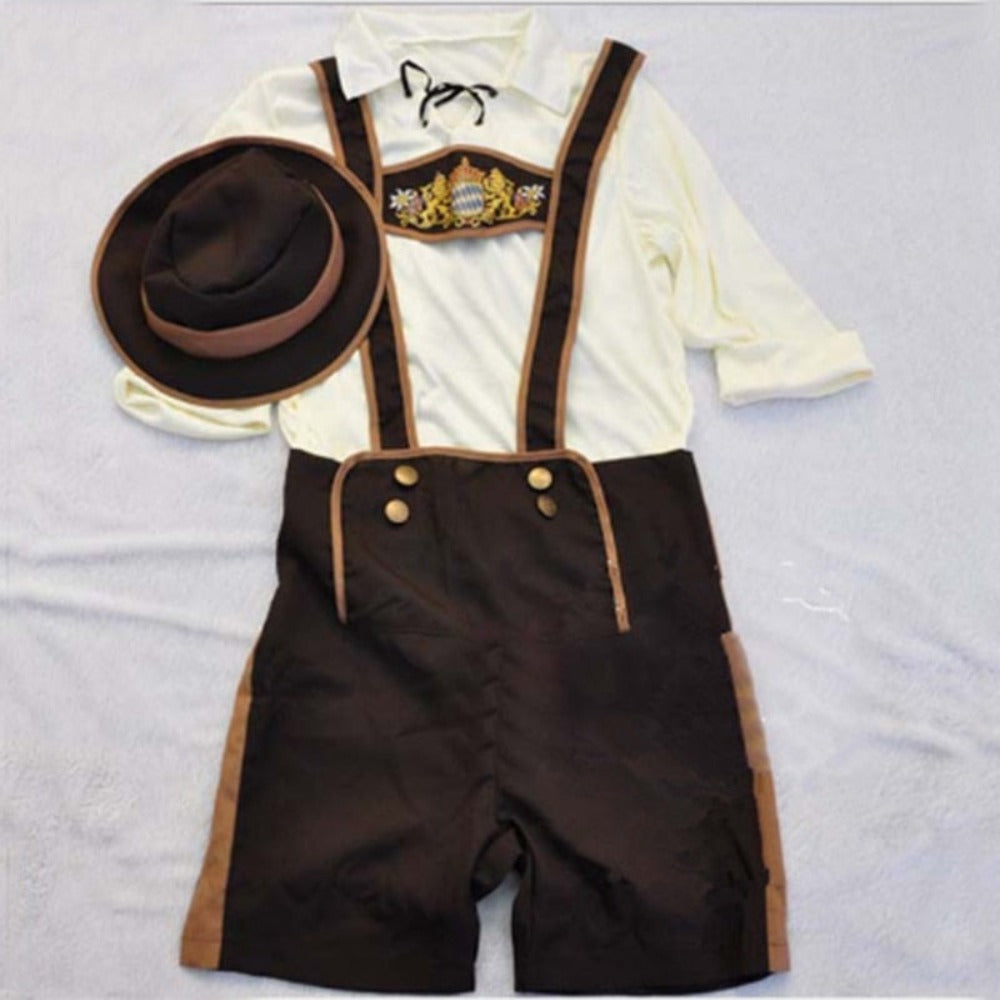 This is a Traditional Oktoberfest Costume for either men or women, that features an off-shoulder style and a modern touch! The is made from 85% Polyester and 15% Nylon.
