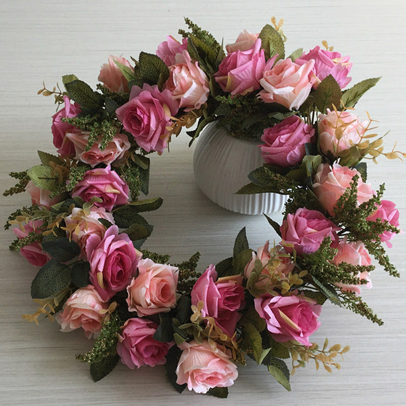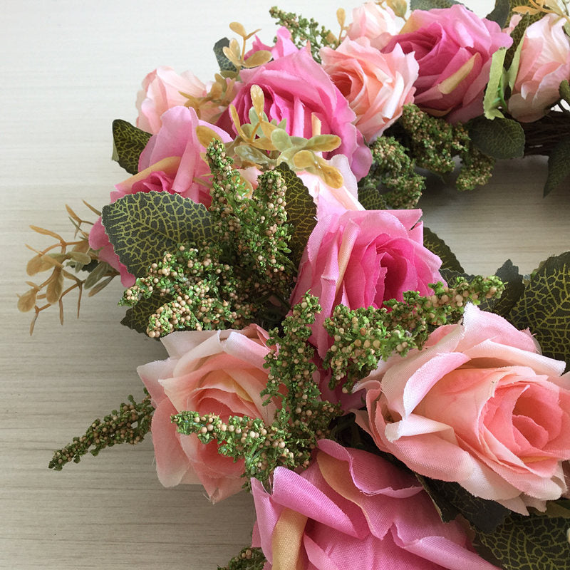 This rose wreath is made of silk roses and leaves, like real dried roses. Flowers and green plants will bring romance and vitality to the environment. This wreath is perfect to give your home a new look.