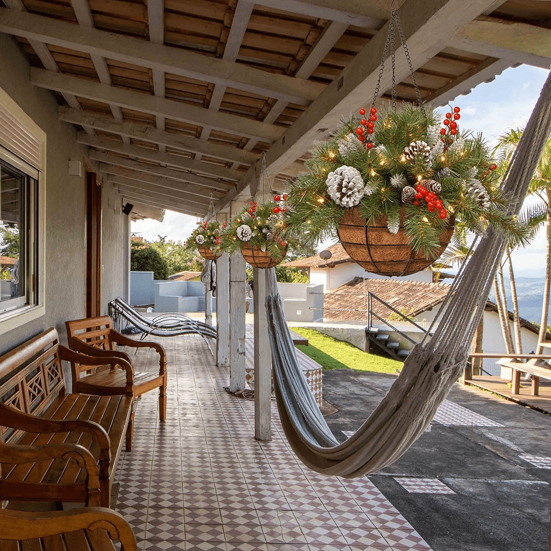 - EASY MAINTENANCE: No need to water or clean up needles, this hanging pine basket will last many holidays with it’s time-tested, fire-resistant, and non-allergenic needles.