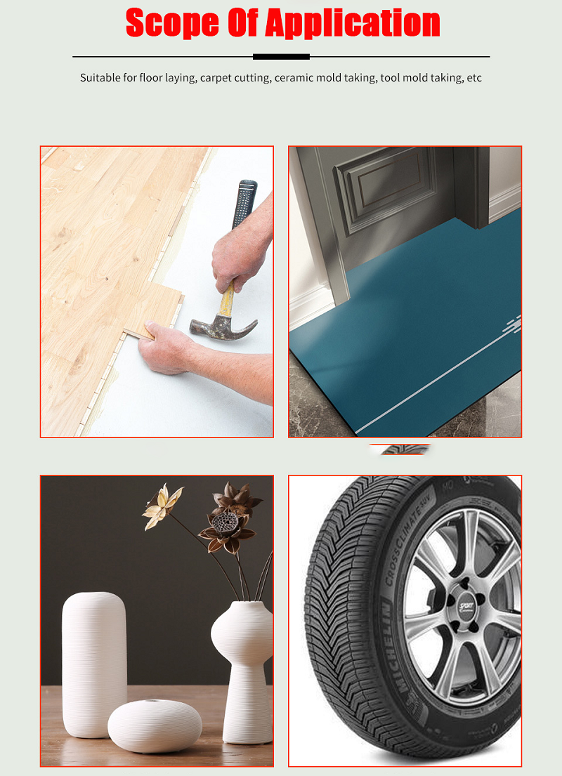 An easier way to duplicate various shapes, ideal for tiles fitting, laminate and carpet cutting, ceramic and tool mold taking, etc.